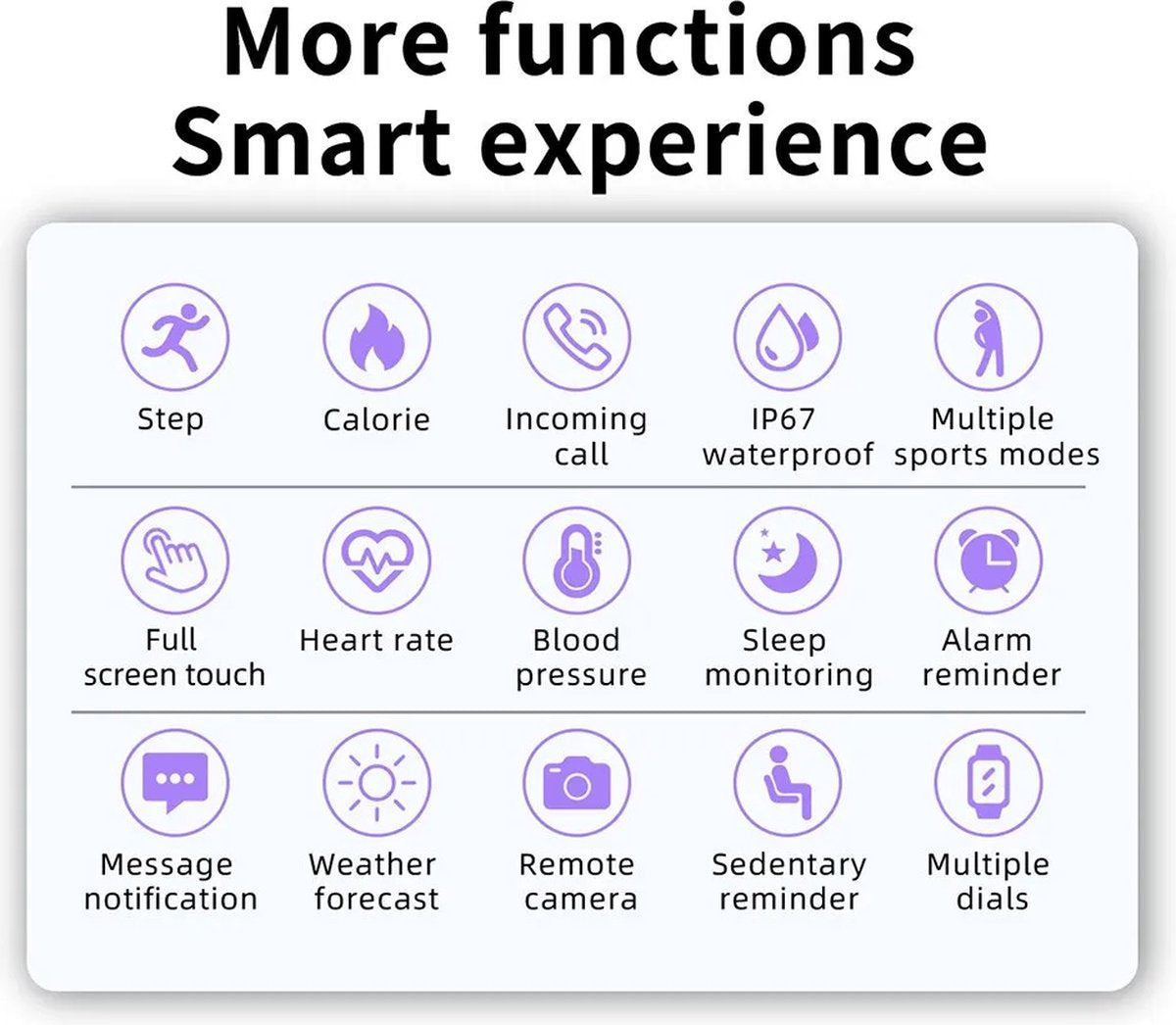 Amb mesurador de pols, pressió arterial, saturació i comptador de passos, podeu controlar fàcilment els vostres valors vitals. Adequat tant per a iOS com per a Android i subministrat amb una corretja addicional perquè pugueu portar el rellotge sempre al vostre gust.