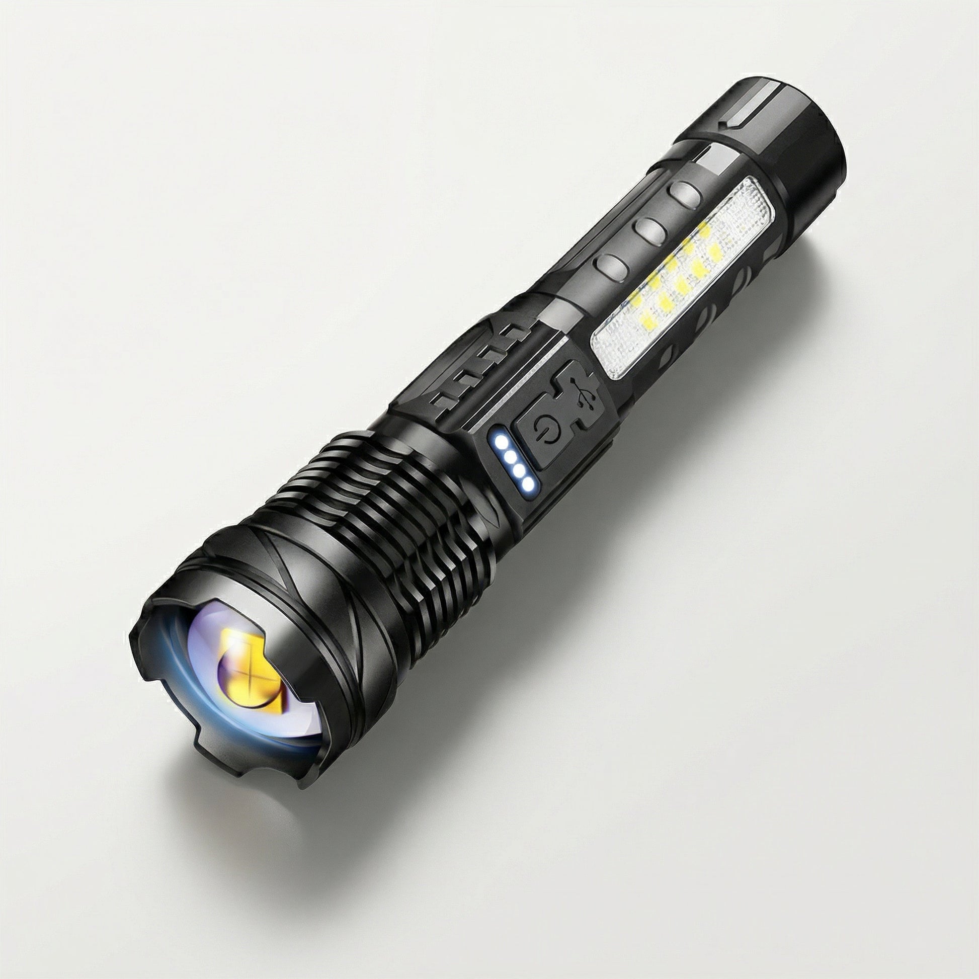 Grâce à son design robuste et ses modes d'éclairage réglables, cette lampe de poche s'adapte facilement à différents environnements. Sa forme compacte la rend facile à transporter dans un sac, une voiture ou un sac à dos. Une solution fonctionnelle pour ceux qui veulent toujours avoir de la lumière à portée de main.