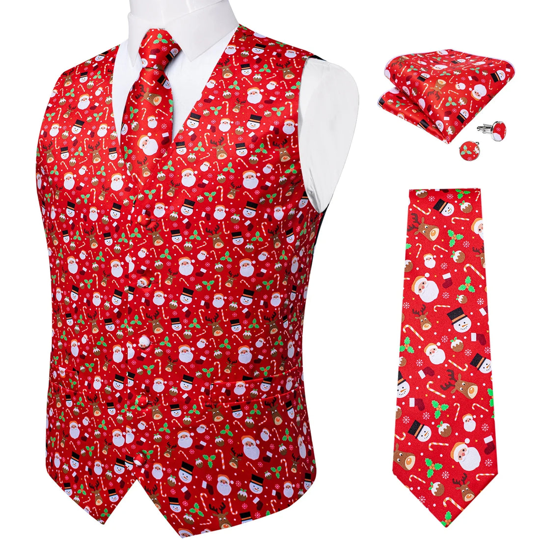 VerdeSilk Chaleco para Hombre – Verde Nadal Seda con Estampado de Copos de Nieve, Elegante e Cómodo para Ocasións Festivas