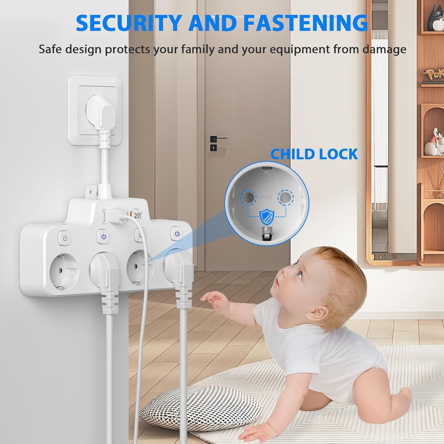 Grazas ás portas USB-A e USB-C, podes cargar varios dispositivos á vez facilmente. O deseño xiratorio e para montaxe en parede fai que a regleta sexa ideal para o fogar e a oficina.