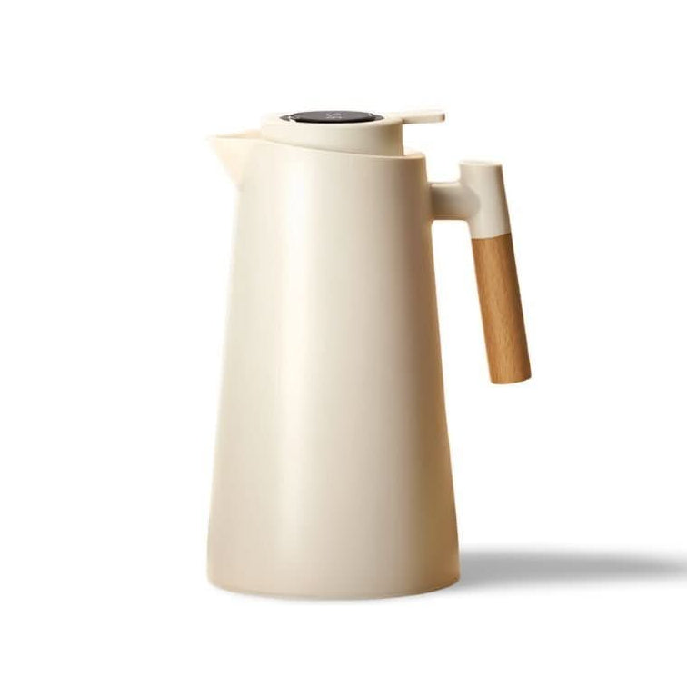 Thermoskan – Dubbelwandig, temperatuurdisplay in deksel & houten handgreep